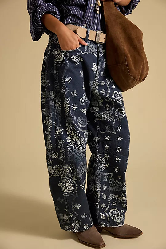 These most-loved barrel jeans from Free People now featured in a playful printed fabrication.