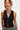 - Open-front design with tie and hook-and-eye closures, lace trimming and piecing, racerback design