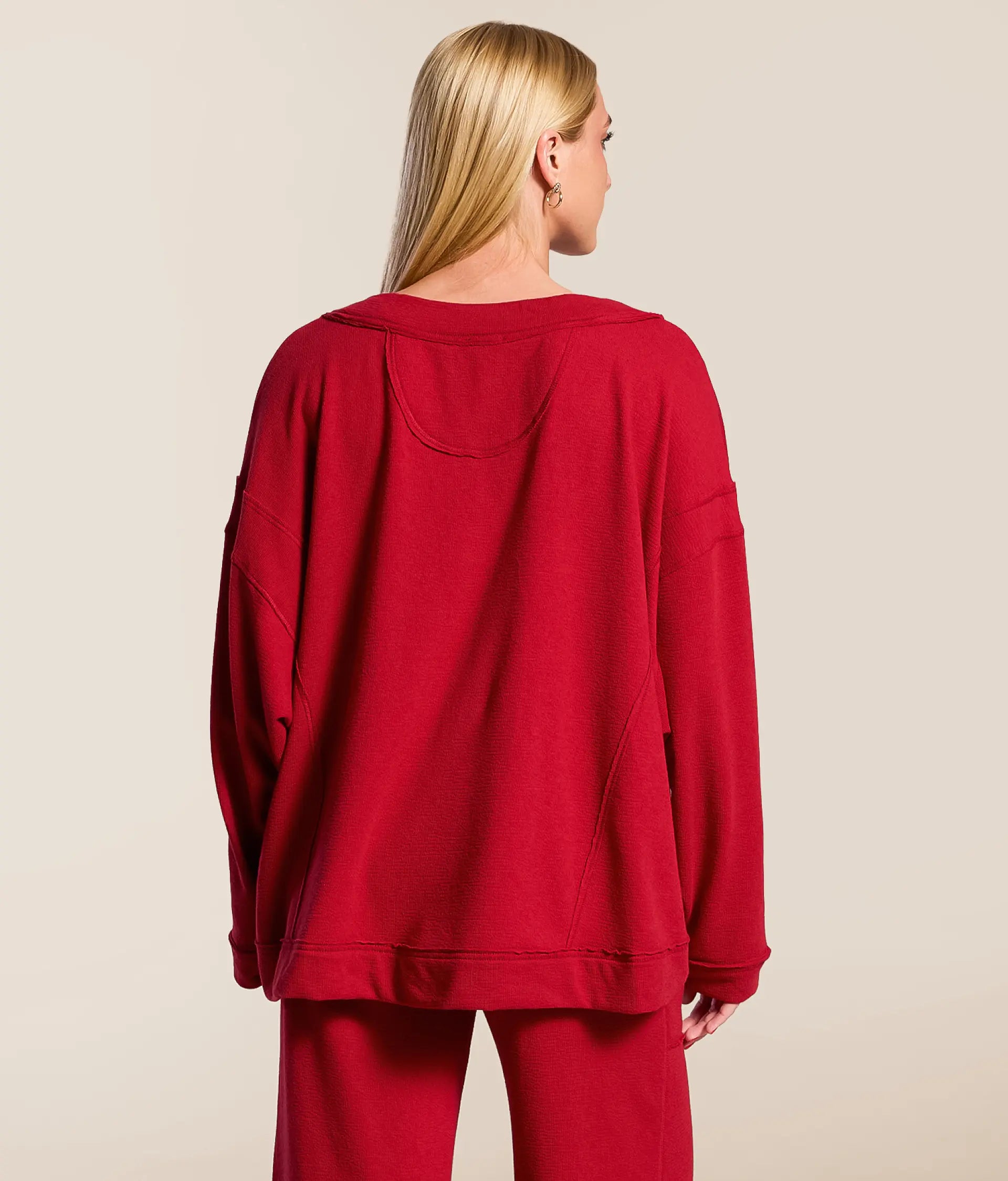 Cozy comfort meets effortless style with this Staycation Pullover. The oversized silhouette with dropped shoulders creates a relaxed yet chic silhouette that pairs perfectly with the matching pants. Perfect for lounging or layering!